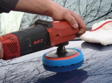Die anschließende Lackfinishpolitur erfolgt mit Maschine und soll Polierschlieren und Hologramme (Wichtig und unumgänglich bei allen dunklen Lacken) vermeiden.