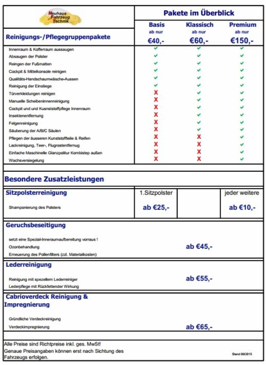 Preise für Aufbereitungen werden ausschließlich nach einem Persönlichen Gespräch mit Ihnen und der Besichtigung Ihres Fahrzeugs ermittelt.